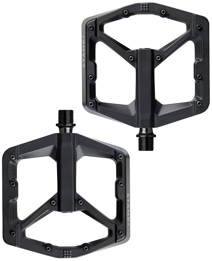 Die Stamp 2 von Crankbrothers sind größenspezifische Plattformpedale mit Aluminium-Pedalkörper und jeder Menge Grip. Sie sind die optimale Schnittstelle zwischen Bike und Schuh.