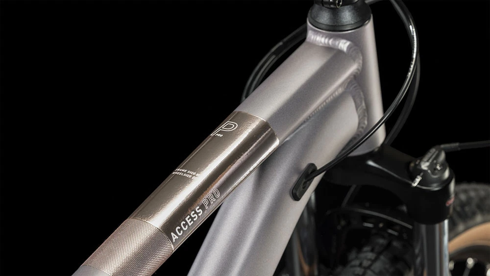 Der Access WS Pro Rahmen besticht mit einem supercleanen Look. Verantwortlich dafür: die im Smooth Welding Verfahren hergestellten Verbindungen am Steuerrohr und Sattelstützenprofil. Außerdem hat CUBE ihm ein geschraubtes Tretlager gegeben und die Züge ins Innere verlegt, damit sie ihre Aufgabe lange machen und leicht gewartet werden können. Dazu gibt’s eine Aufnahme für eine Flat-Mount-Scheibenbremse und einen Seitenständer. Montagepunkte für ACID Schutzbleche und Gepäckträger sind auch mit dabei. Die Geometrie ist speziell auf die weibliche Anatomie abgestimmt. Sie hat ein niedriges Oberrohr für zuverlässiges Handling und lässt viel Platz für breite, griffige, komfortabel rollende 2.25 Zoll Reifen. Auch haben wir unser Size Split System jetzt breiter aufgestellt – dadurch findet jede Fahrerin die perfekt passende Access WS Pro Rahmengröße für sich.