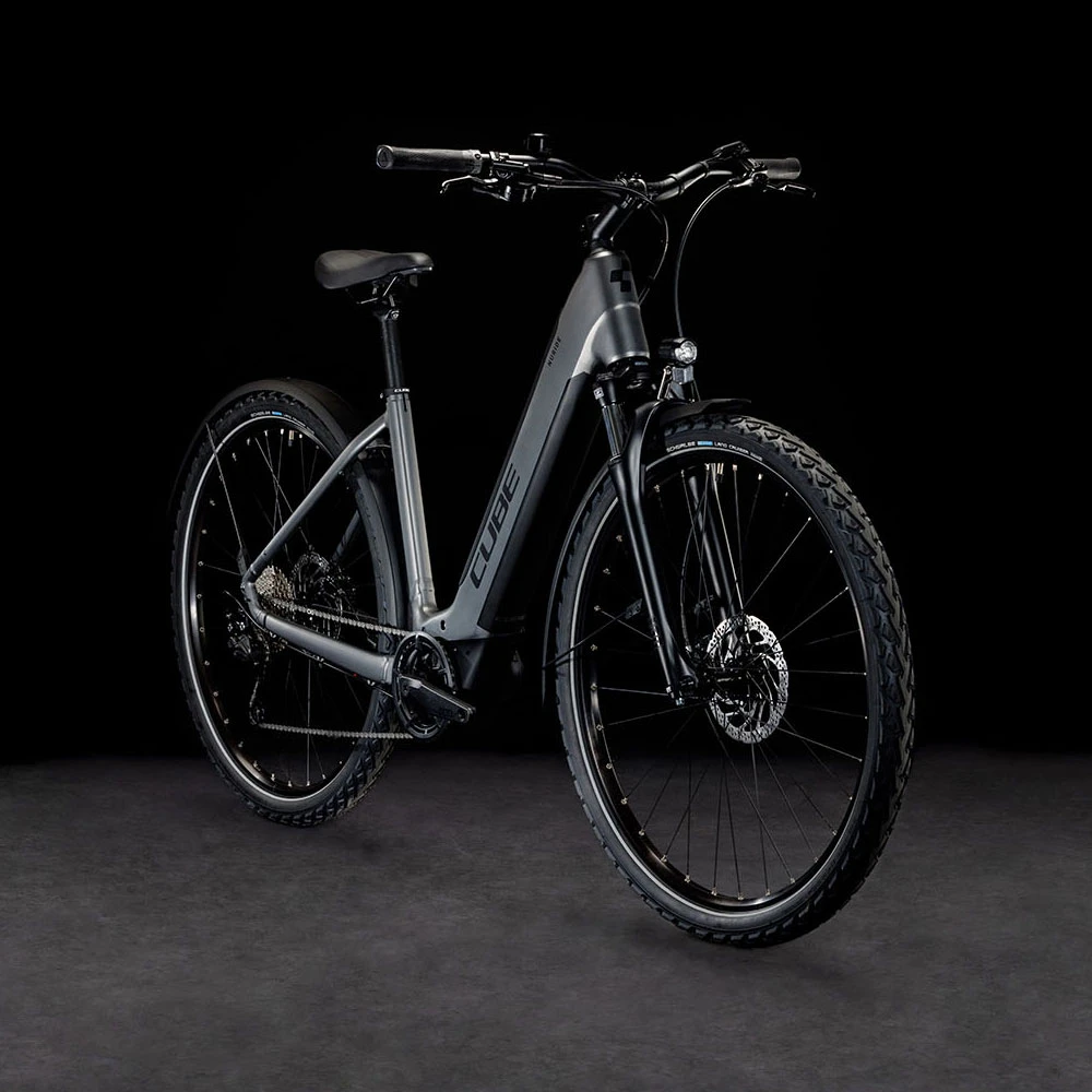 Damit absolut jeder in den Genuss seines ganz persönlichen Zweiradabenteuers kommt, hat CUBE das Nuride Hybrid Performance Allroad entwickelt. Eine 63 mm Federgabel und griffige Schwalbe Reifen sorgen für ein superkomfortables Fahrgefühl, selbst auf holprigen Strecken und Trails. Um die nötige Sicherheit und Kontrolle bei allen Witterungsbedingungen kümmern sich die leistungsstarken Scheibenbremsen. Und weil der Bosch Performance Motor mit Smart System nahtlos mit der einfach bedienbaren 9-Gang Schaltung von Shimano zusammenarbeitet, meisterst du jede Route und jeden Anstieg mit Leichtigkeit. Clever: Dank praktischem Zubehör, bestehend aus Schutzblechen, Lichtern und Seitenständer, ist dieses Bike allzeit bereit für alles, was du damit vorhast!