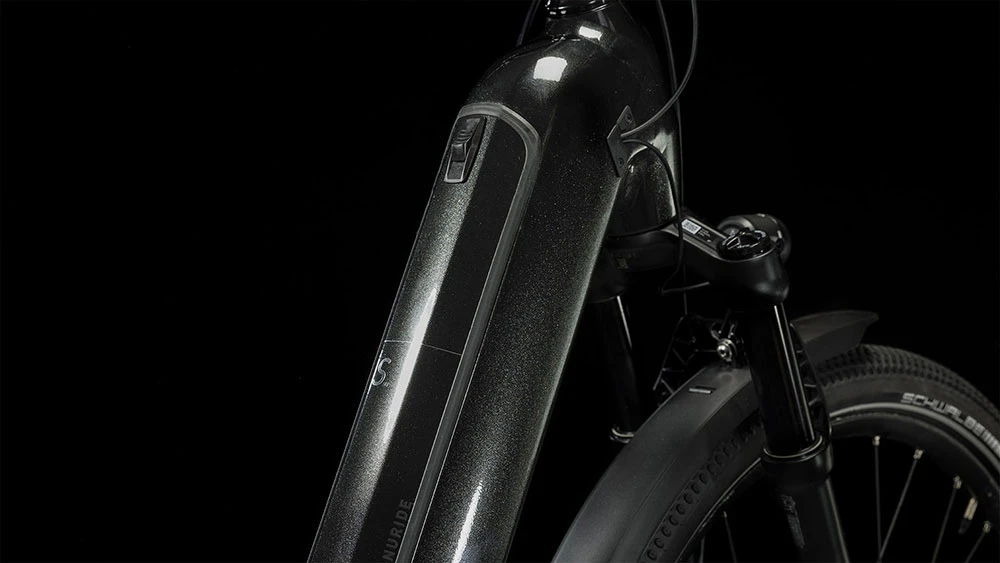 Den Nuride Hybrid 750 Allroad gibt es als Tiefeinsteiger, Trapezrahmen oder klassischen Herrenrahmen und jeweils in verschiedenen Größen, was bedeutet, dass jeder Entdecker die perfekte Passform für sich findet. Im Zentrum dieser brandneuen Konstruktion sitzt – sauber und unauffällig ins Design integriert – der 750 Wh starke Akku für maximale Reichweite. Außerdem hat CUBE zwei Ideen von ihren Mountainbikes aufgegriffen. Zum einen wurden die Schalt- und Bremszüge ins Innere verlegt, was den Wartungaufwand minimiert, zum anderen garantiert ein X12 Boost Hinterbau sicheres, zuverlässiges Handling. Fazit: alles, was man braucht, in einem clean designten Paket!