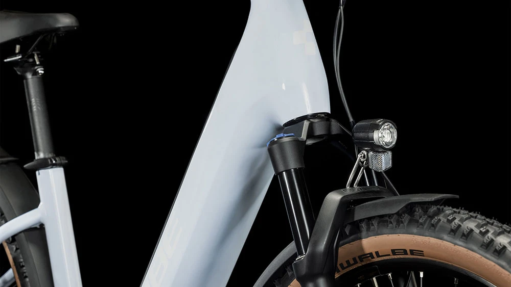 Dabei wechselt die breit gefächerte Deore 11-fach Schaltung von Shimano präzise von Gang zu Gang und macht selbst steile Anstiege zum Spaziergang. Volle Kontrolle in jeder Situation ist das Spezialgebiet der leistungsstarken hydraulischen Scheibenbremsen in Kombination mit 2.6 Zoll breiten Schwalbe Reifen. Außerdem hat CUBE dem Bike für top Fahrkomfort eine einfach einstellbare Luftfedergabel spendiert. Und einen Gepäckträger, Schutzbleche, einen Seitenständer und Lichter für top Support und Sicherheit auf dem Weg durch City oder für den Wochenendausflug.