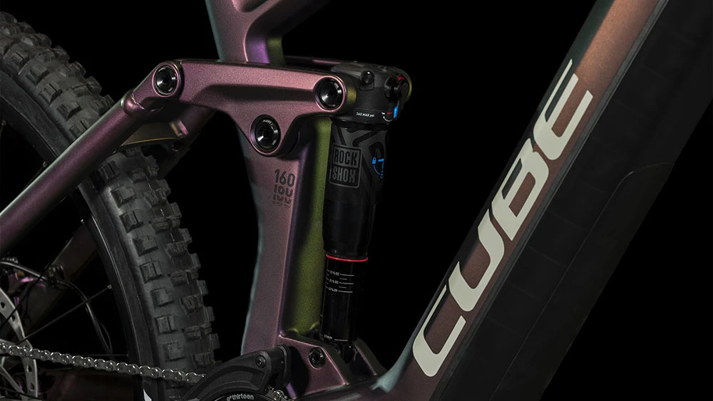 Ein Enduro-taugliches Fully mit E-Antrieb, gibt es sowas? Klar, das gibt’s, und es heißt Stereo Hybrid 160 HPC. Sein Carbonhauptrahmen kann dank Modular Battery System neben einem Bosch Motor der vierten Generation auch noch einen bis zu 750 Wh starken Akku aufnehmen. Und weil das Chassis trotzdem in allen Größen verfügbar ist, findest du auf jeden Fall das perfekte Set-up für dich und deine Anforderungen. CUBE hat bei der Entwicklung zudem viel Wert auf Vielseitigkeit und ein praktisches Handling gelegt. Deshalb gibt es genügend Platz für einen Flaschenhalter und du kannst die Akku-Abdeckung einfach per Druckknopf öffnen. Und dann die rennorientierte Geometrie, die Boost 148 Steckachse und das 1.5 Zoll Steuerrohr – allesamt Garanten für ein superpräzises Fahrgefühl und top Bodenhaftung, selbst auf verblockten oder sehr ruppigen Trails. Dazu bedeuten eine Trunnion Dämpferaufnahme, große Umlenkpunkte und im Rahmeninneren verlaufende Züge wenig Wartungsaufwand – und dadurch mehr Zeit für maximalen Offroad-Bike-Spaß, am Berg!