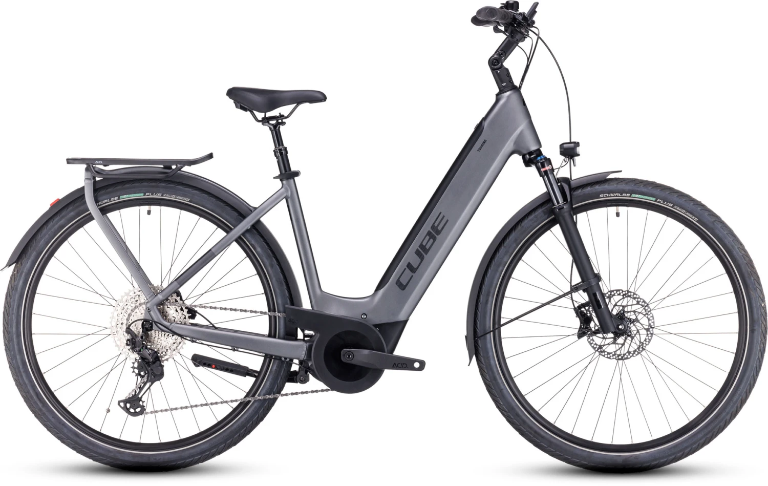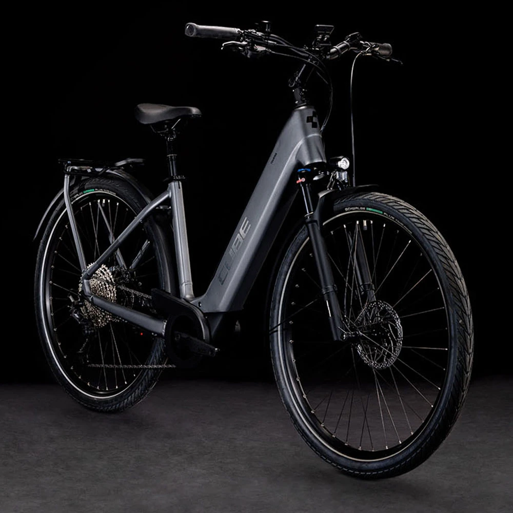 Bei der Entwicklung des Touring Hybrid standen Vielseitigkeit, einfaches Handling und hoher Fahrkomfort im Fokus. Also habt Cube den leistungsstarken Bosch Performance Motor mit Smart System und den PowerTube Akku so formschön ins Rahmendesign integriert, dass sie kaum auffallen. Was aber auffällt, ist der tolle Support im Vorwärts. Die überarbeitete Efficient Comfort Geometry sorgt gemeinsam mit der Federgabel mit 63 mm Federweg für ein komfortables und zugleich kontrolliertes Fahrgefühl, selbst auf holprigen Strecken. Auf dem elegant designten integrierten Gepäckträger IC 3.0 reist sämtliches Hab und Gut bequem und sicher von A nach B. Und in der Sattelklemme hat Cube ein praktisches Mini-Tool versteckt. Was noch? Ein neuer ACID Kettenschutz, ein Seitenständer und extralange Schutzbleche. Gut zu wissen: Den Rahmen gibt es als klassischen Herrenrahmen, Trapezrahmen oder Tiefeinsteiger – da ist für jeden die passende Version und Größe mit dabei!