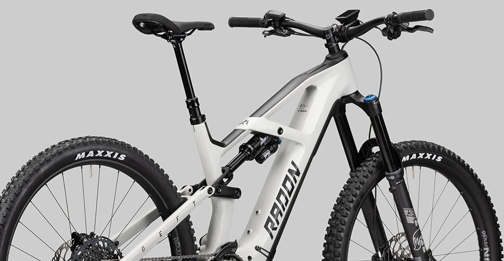 Die Schaltgruppe wird von SRAM geliefert und stellt mit Eagle Technologie ein breites Spektrum an Gängen bereit, die große Kassette mit 10-52 Zähnen lässt Dich jeden Gipfel erklimmen und stellt trotzdem auch für die Abfahrt immer den richtigen Gang bereit. Wenn es abwärts geht, steht Dir mit Magura’s MT5 Vierkolbenbremse ein treuer Partner zur Seite, der martialisch zubeißt, sich aber dennoch fein dosiert einsetzen lässt. Bei der vollen Kontrolle über den Trail wird die MT5 unterstützt vom RaceFace Turbine R Cockpit, was kurz, breit und ergonomisch geshaped ist. Viel Beinfreiheit in technischen, steilen Trailabschnitten garantiert die mechanische RADON Variostütze mit 150mm Hub, die sich bequem vom Lenker aus bedienen lässt. Mitverantwortlich für das niedrige Gewicht des DEFT 9.0 750 sind die SUNringlé Düroc SD37 Expert Laufräder, die gleichzeitig leicht und solide sind – Stahlachsen und Rotor sind speziell auf die Kräfte von Ebikes ausgelegt. Für maximalen Grip spezifizieren wir Maxxis‘ Kombination aus Assegai vorne und Minion DHR II hinten, beide mit griffiger Gummimischung und der Exo+ Karkasse für großen Pannenschutz. DEFT 9.0 750 hat, was Du brauchst!