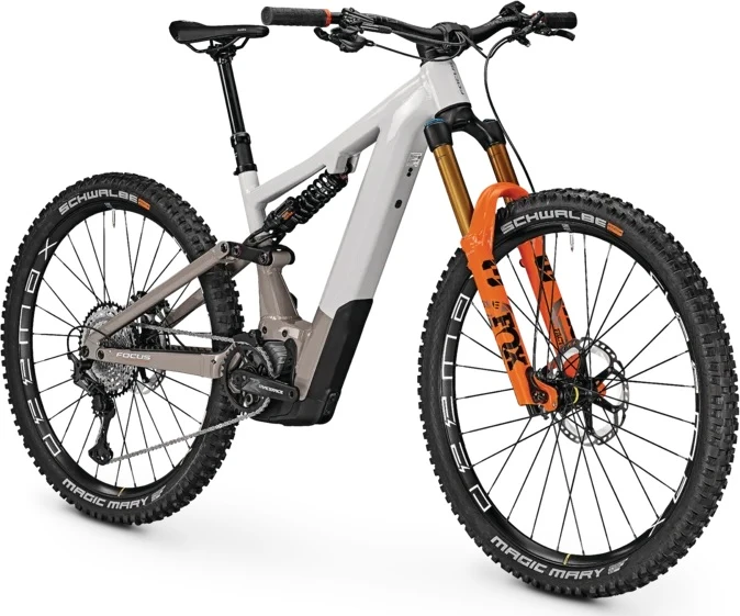 Die abfahrtslastige Ausrichtung wird unterstrichen durch serien-mäßig verbaute Federgabeln mit 38 mm Standrohren. Außerdem ist das E-Enduro mit einem Stahlfeder-Dämpfer kompatibel. Die voll integrierte C.I.S. Kabelführung sorgt für ein aufgeräumtes Cockpit.