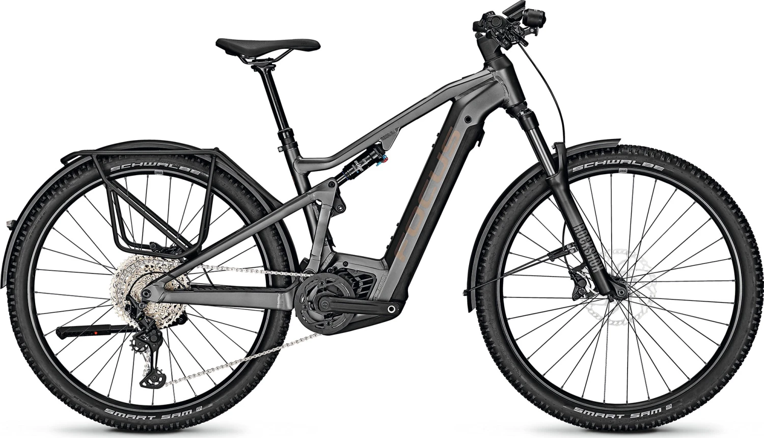 Das FOCUS THRON² EQP bietet maximale Vielseitigkeit. Mit 130 mm F.O.L.D. Federweg und 29”-Laufrädern ist das THRON² auf dem Trail zuhause und holt dank des Bosch Performance CX Smart (Gen.4) E-Antriebs mit 625 Wh noch mehr aus jeder Fahrt heraus. Mit Gepäckträger, Schutzblechen, Ständer und Licht eröffnet dir dieses astreine Tourenfully ganz neue Möglichkeiten von Bikepacking bis Pendeln.