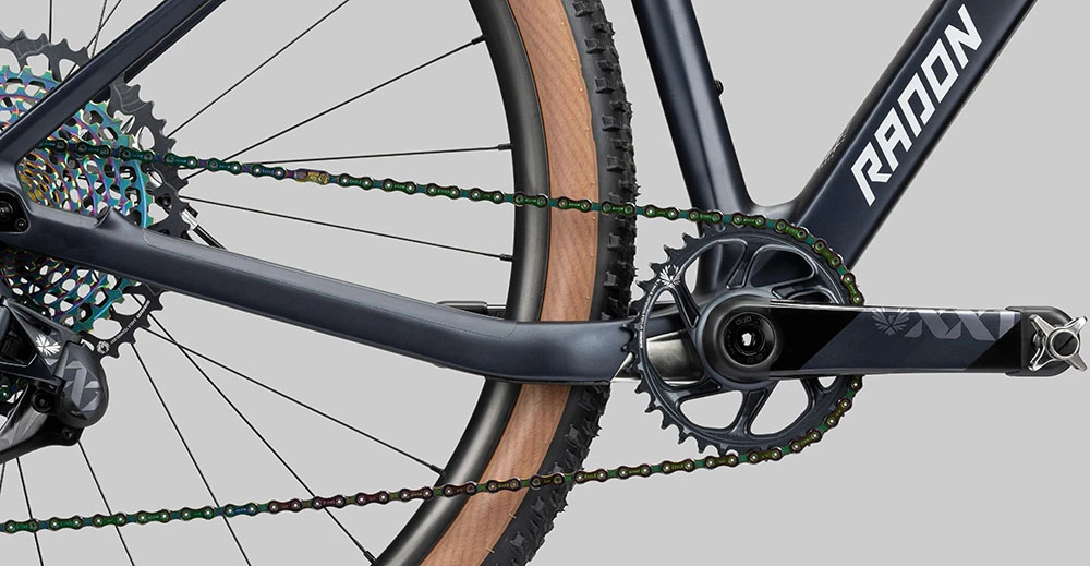 Dazu kommt die elegante Erscheinung, die dadurch unterstützt wird, dass durch die konsequente Auslegung auf Einfachantriebe keine überflüssigen Rahmenöffnungen das Erscheinungsbild trüben. Auch bei der Federgabel sind wir keine Kompromisse eingegangen: hier arbeitet die Fox 32 Factory Step Cast mit ihren 100mm feinsten Federwegs, die von Weitem sichtbare Kashima Beschichtung sorgt für bestes Ansprechverhalten und neidische Blicke und bei Bedarf lässt sie sich auch noch vom Lenker aus sperren für den Überraschungsangriff am Berg! Bei der Schaltung haben wir ebenfalls aus dem Vollen geschöpft und SRAM‘ s elektronische XX1 Eagle AXS ans JEALOUS geschraubt. Neben den üblichen Eagle Vorzügen wie extrem schnellen und knackigen Schaltvorgängen kommt hier noch die Selbstjustierung dazu, eine verstellte Schaltung gehört der Vergangenheit an. Die Schaltgruppe wird ergänzt von der extrem leichten XG1299 Kassette mit ihrer enormen Bandbreite von 10-52 Zähnen, die mit ihrem kupferfarbenen Schimmer das Kashima Coating der Gabel wunderbar matcht. Auch bei der Bremse gehen wir gewichtstechnisch aufs Ganze und spezifizieren die sehr leichte Magura MT8 SL, die einige Gramm einspart, aber bei der Bremswirkung nicht geizt. Dazu sparen wir bei der so wichtigen rotierenden Masse extrem Gewicht mit der Kombination aus dem superben Newmen Advanced SL X.A. Laufradsatz und den Top-Produkten von Schwalbe, der Kombination aus Racing Ray und Racing Ralph in leichter Super Race Karkasse und stylischer transparent skin Optik. Bei den restlichen Anbauteilen wie Lenker, Sattelstütze und Sattel herrscht Carbon als Material vor, was zum sensationellen Gesamtgewicht beiträgt. Unser JEALOUS 10.0 EA ist bereit, wenn Du es bist!