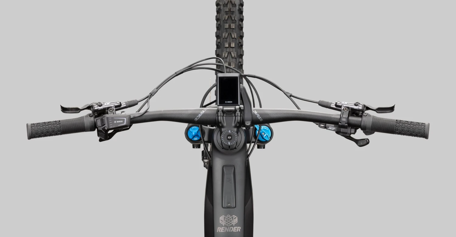 Unser RENDER ist ein moderner Klassiker, für die Saison 2022 kommt er zusätzlich noch als Überarbeitung für das neue Bosch Smart System. Was bleibt, sind der hochmoderne, leichte und sehr steife Carbonrahmen mit dem prägnanten Flügel zwischen Ober- und Unterrohr, der elegant auch den Dämpfer aufnimmt. Ebenso erhalten bleiben die 140mm Federweg am Hinterbau, die wir an der Front mit 160mm Federgabeln kombinieren. Im Unterrohr wird der kapazitätsstarke 750 Wh Akku untergebracht, der den brutal starken Bosch Performance CX Motor mit seinen 85 Nm antreibt. Neu ist auch die Ladebuchse für die Batterie, die auf der linken Seite des Sitzrohrs liegt und bei Nichtbenutzung von einer kleinen, drehbaren Scheibe vor Schmutz geschützt wird. Der Speedsensor sitzt bei der neuesten RENDER Variante im Ausfallende, der Signal gebende Magnet dreht sich in der hinteren Bremsscheibe. Optional kann der neue RENDER Rahmen im Oberrohr ein Display aufnehmen, wo Du dann alle Daten äußerst praktisch direkt im Blick hast.