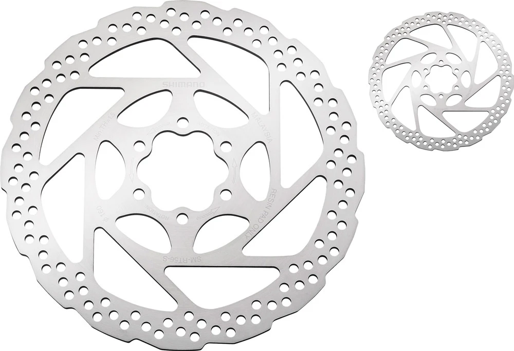 Die Shimano SM-RT56 6-Loch Bremsscheiben bieten exzellente Bremskraft bei allen Fahrbedingungen. Dank der neuen Konstruktion mit Befestigungsplättchen lassen sich die Bremsscheiben sicher und schnell einbauen. Nur für Resinbeläge geeignet.