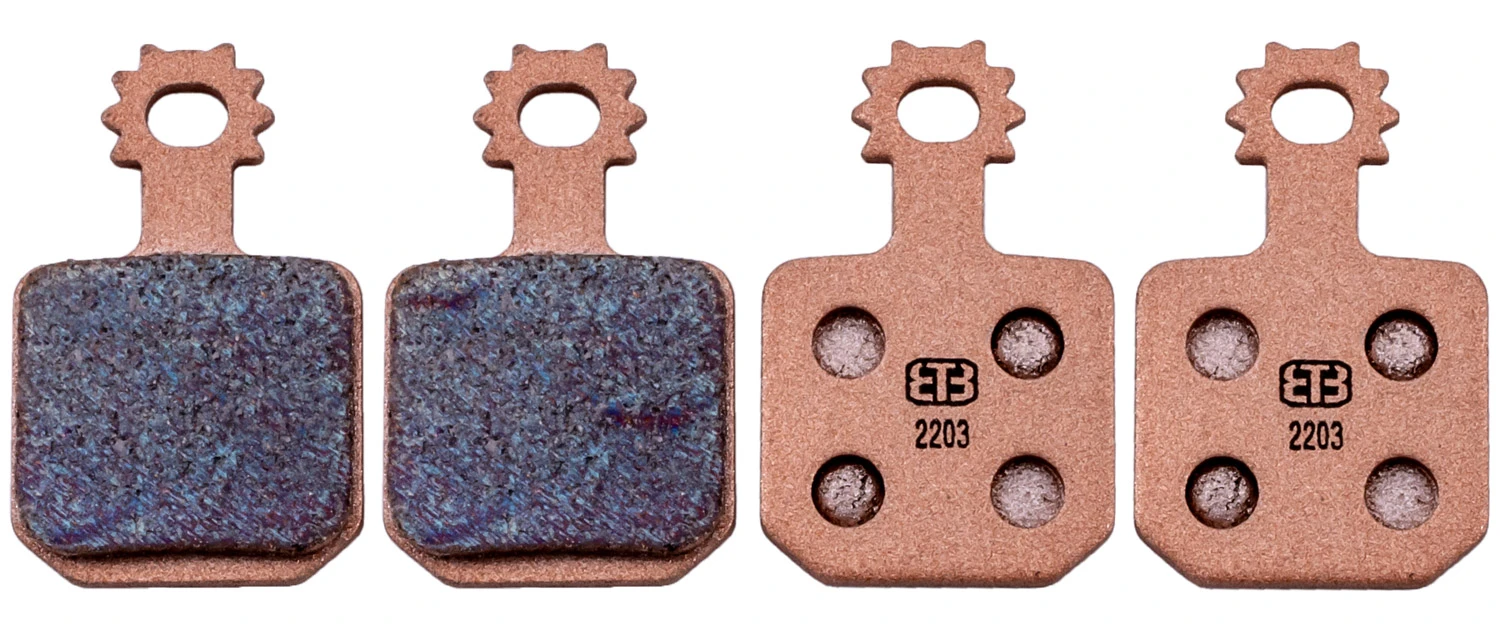 - Gesintert: Gute Heißbremseigenschaften – Bremskraft baut sich schnell auf; optimal für den Freeride- bzw. Downhilleinsatz geeignet; greift schnell und stark; leistungsstark